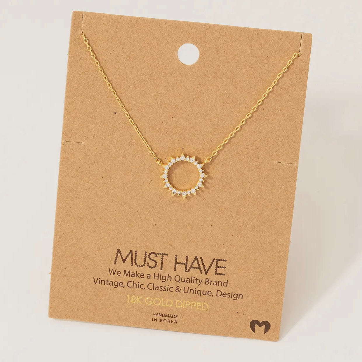 Discover the enduring elegance of our Pave Circle Sun Pendant Necklace.