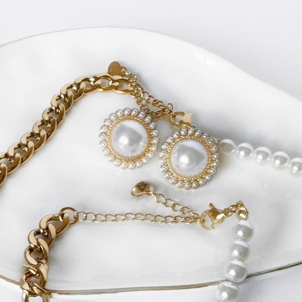 Featuring a medium-sized central pearl surrounded by a delicate halo of tiny pearls, these studs offer just the right amount of sparkle and sophistication.