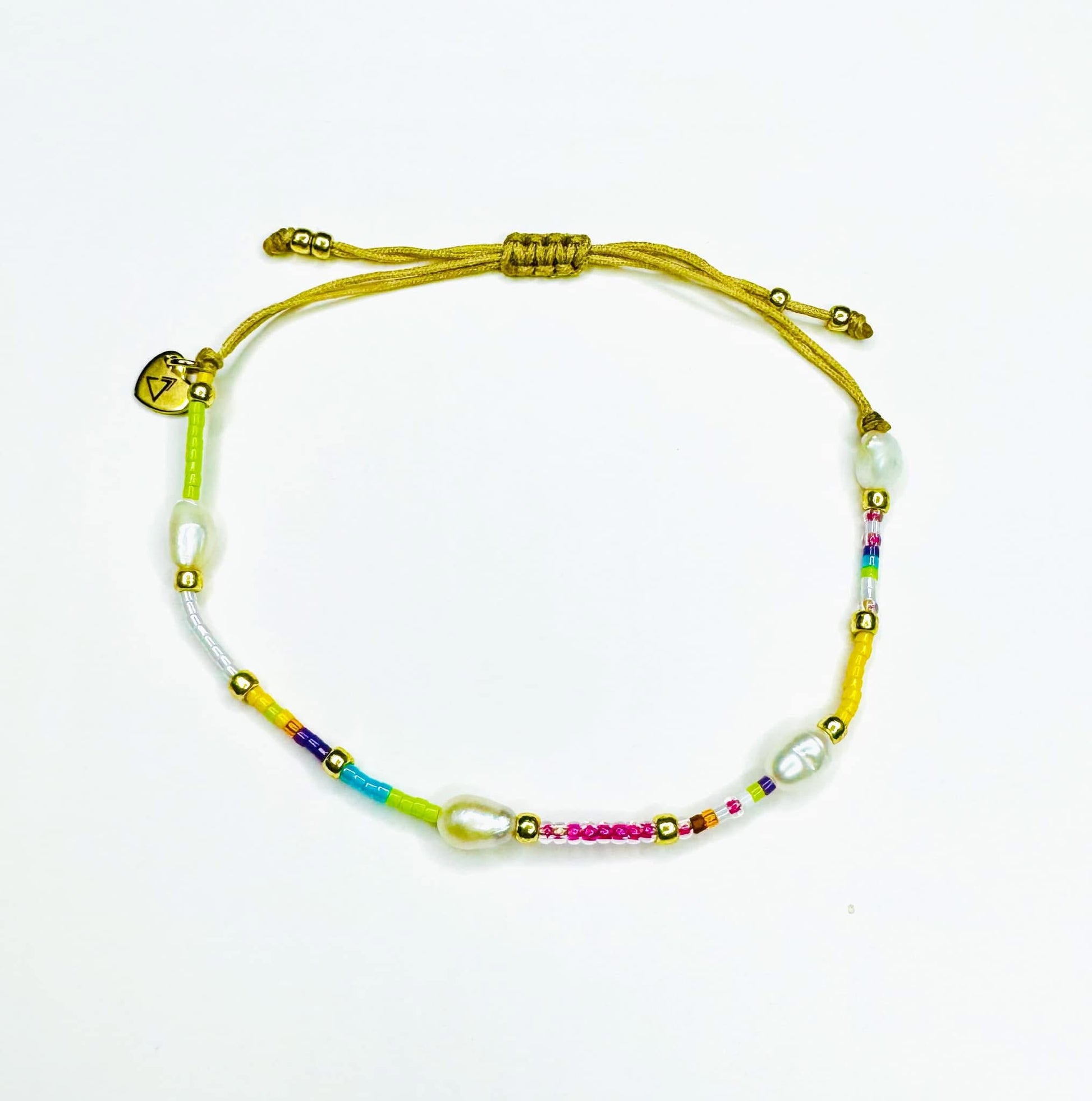 Beautiful multicolor beads with pearls reminding you to spread love daily.