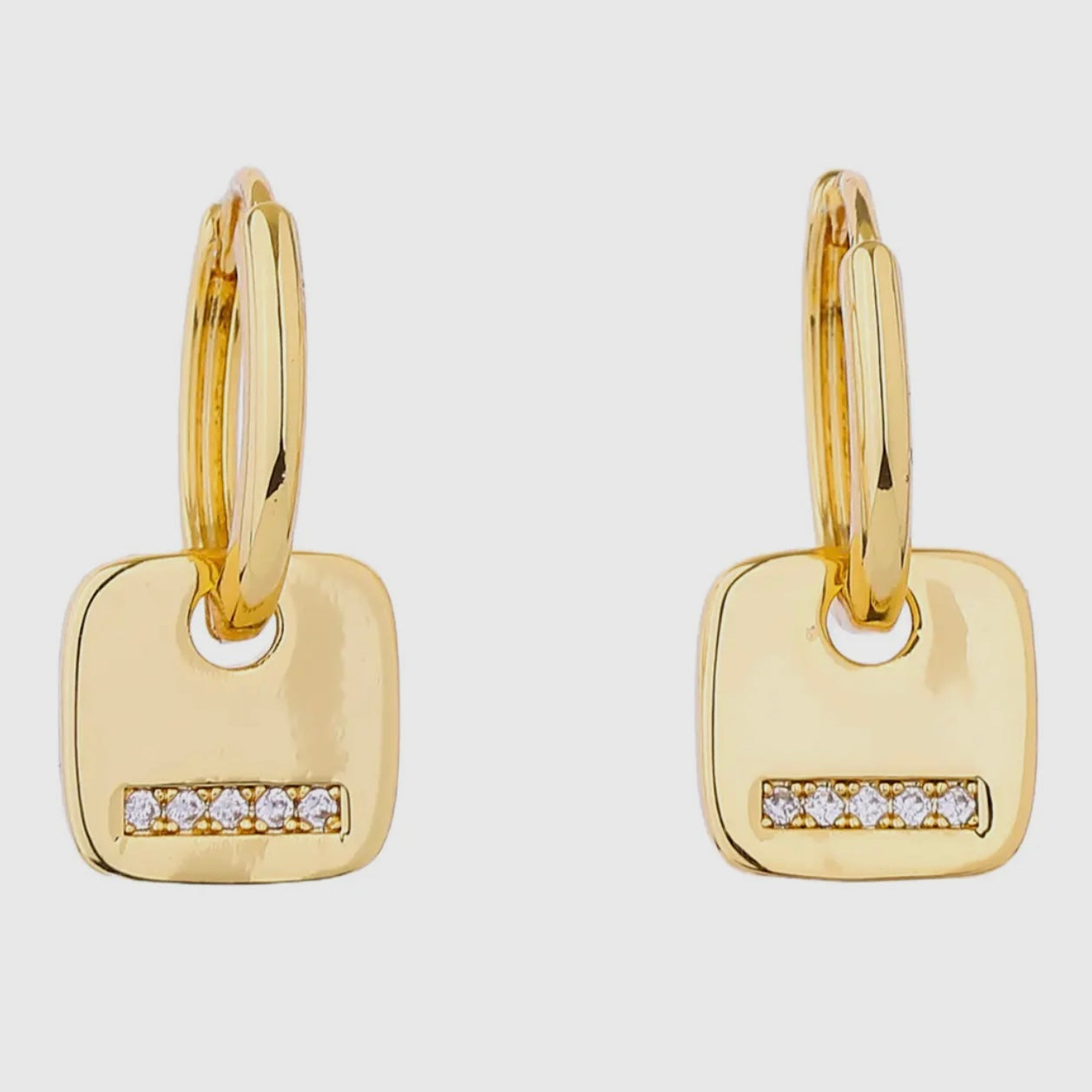 14K Gold-Dipped CZ Squircle Drop Huggie Earring